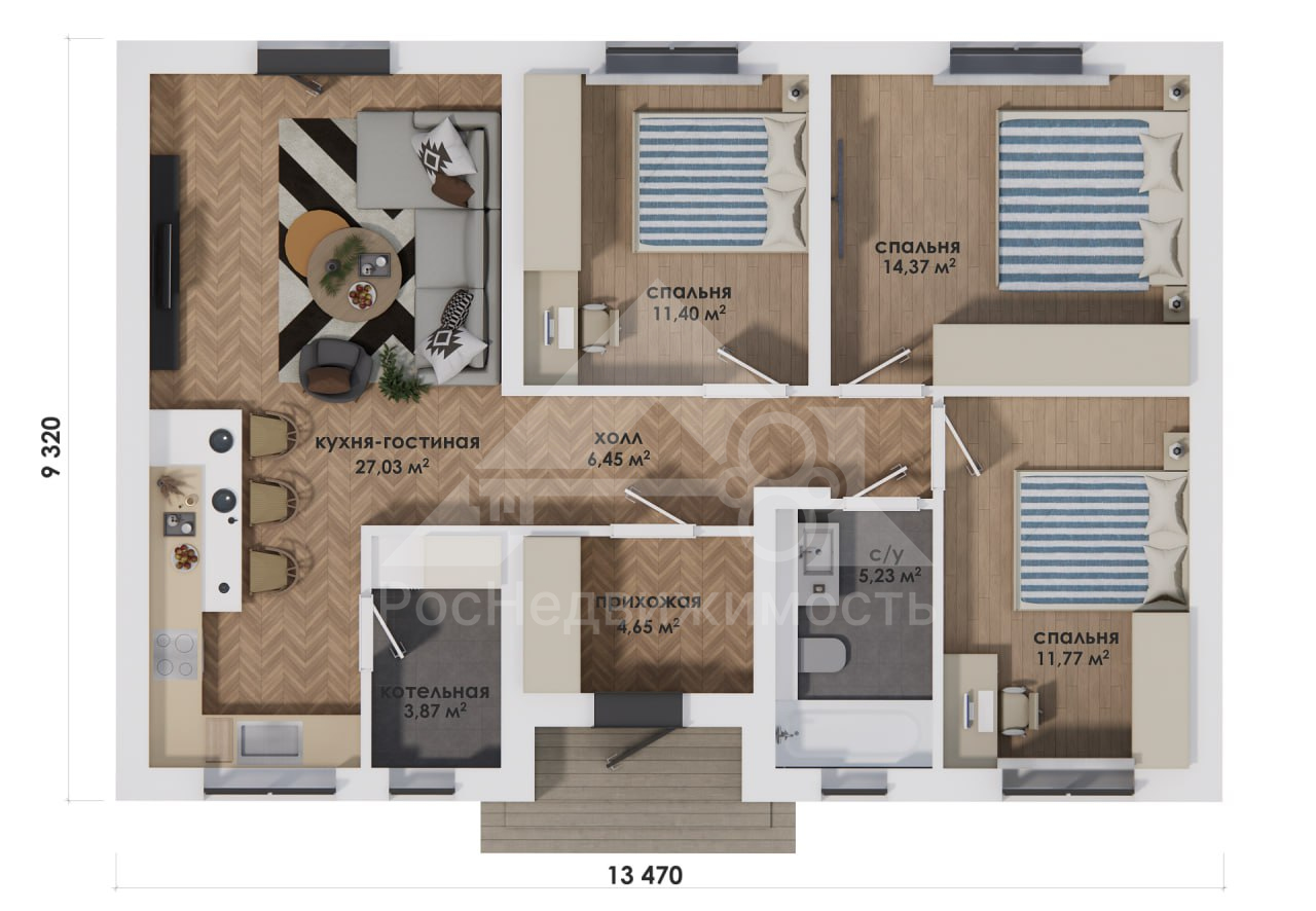 Номер объекта - 1614 Предлагаем к продаже земельный участок с готовым проектом одноэтажного дома 85 м². Отличный вариант для тех, кто планирует комфортное загородное проживание в спокойном и живописном месте. Адрес:Владимирская область, Юрьев-Польский муниципальный округ, село Кумино Кадастровый номер участка: 33:04:062102:928 Участок входит в указанную стоимость. Цена — 30 000 рублей за сотку. При наличной форме расчёта предоставляется скидка 10%. Готовы подробно ответить на все вопросы и предоставить дополнительную информацию. Звоните — будем рады помочь! В "Базовую" комплектацию дома входит полный закрытый теплый контур: • Несущие стены газобетон / теплая керамика • Утепленная кровля из металлочерепицы • Окна двухкамерные с тройным стеклопакетом • Металлическая входная дверь • Фундамент (в зависимости от участка) • Утепленная отмостка О доме: • Площадь дома: 85.00 м2 • Фундамент: Бетонный • Покрытие крыши: Металлочерепица/Кликфальцевая • Внешняя отделка стен: Штукатурка Короед В доме: • Кухня: 27.03 м2 • Комнаты: 3, площадью 11,40-14,37-11,77 м2 • Санузел: Совмещенный в доме • Ванная: Стандартная • Мебель и бытовая техника при продаже — Без мебели. Расположение в доме: На 1 этаже расположено: Кухня-Гостиная, 3 Спальни, Хол, Прихожая, Сан. Узел, Котельная Об участке: • Площадь земельного участка: 17.08 соток • Форма: Прямоугольная • Рельеф участка: Ровный • Разрешенное использование: Сельскохозяйственное использование • Забор: Отсутствует • Границы участка: Уточнены • Земля: Не разработана • Дополнительные постройки на участке: Ничего Окружение: • Дорога к дому: Асфальт. Дорога в отличном состоянии • В зимнее время дом доступен • До ближайшей остановки общественного транспорта: менее 200 метров • В шаговой доступности следующие объекты: Остановка общественного транспорта, Лес, Водоем Если вас заинтересовал дом — обращайтесь за подробностями. Всегда рады помочь. Помощь в получении кэшбека при покупке недвижимости, ипотеки, реализации материнского капитала и сертификатов. Гарантируем безопасность сделки.